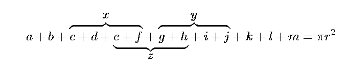 \overunderbraces{&\br{2}{x}& &\br{2}{y}}