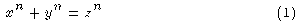 x^n + y^n &= z^n&\elab{eq:fermat}}$$